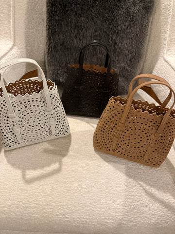 Laser cut leather bag - small