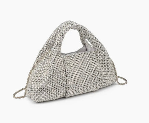 Glam up your evening with this dazzling bag covered in pearls and rhinestones. It features a top handle and silver hardware, adding a touch of sophistication to any outfit. The magnetic snap closure keeps everything secure, while the detachable chain strap offers versatile carrying options. Inside, the fabric lining and slip pocket ensure your essentials stay organized and fabulous. *Item Type: Evening Bag *Material: Rhinestones *Closure: Magnetic Snap *Exterior Details: Top Handle, Pearl and Rhinestones All-over, Silver Hardware, Detachable Chain Strap *Interior Details: Fabric Lined, 1 Slip Pocket
