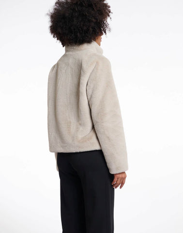 Indulge in luxurious comfort with this exquisite faux-fur jacket. This short, loose-fitting jacket, high neck collar, tonal button closure and side pockets. Plus, its lining will provide you that extra comfort. This is the perfect jacket for any occasion.