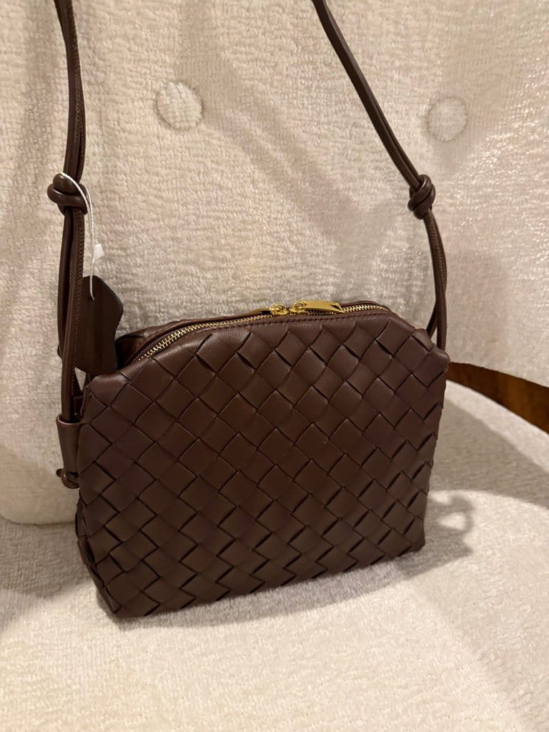 Woven genuine leather with gold zipper.